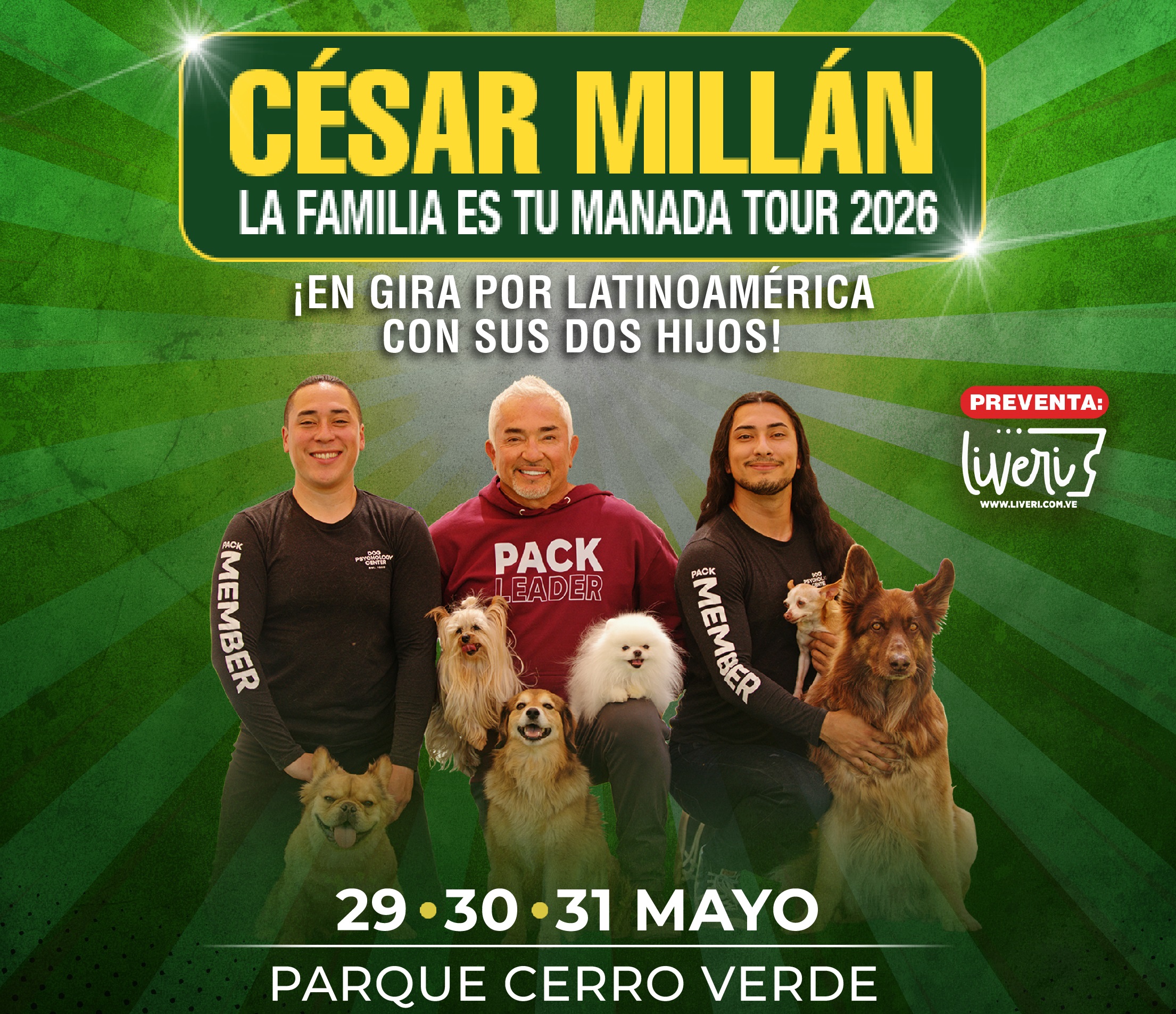 ¡El ícono mundial del comportamiento canino, presenta su gira internacional «La Familia Es Tu Manada”, ¡por primera vez en Venezuela junto a sus dos hijos!