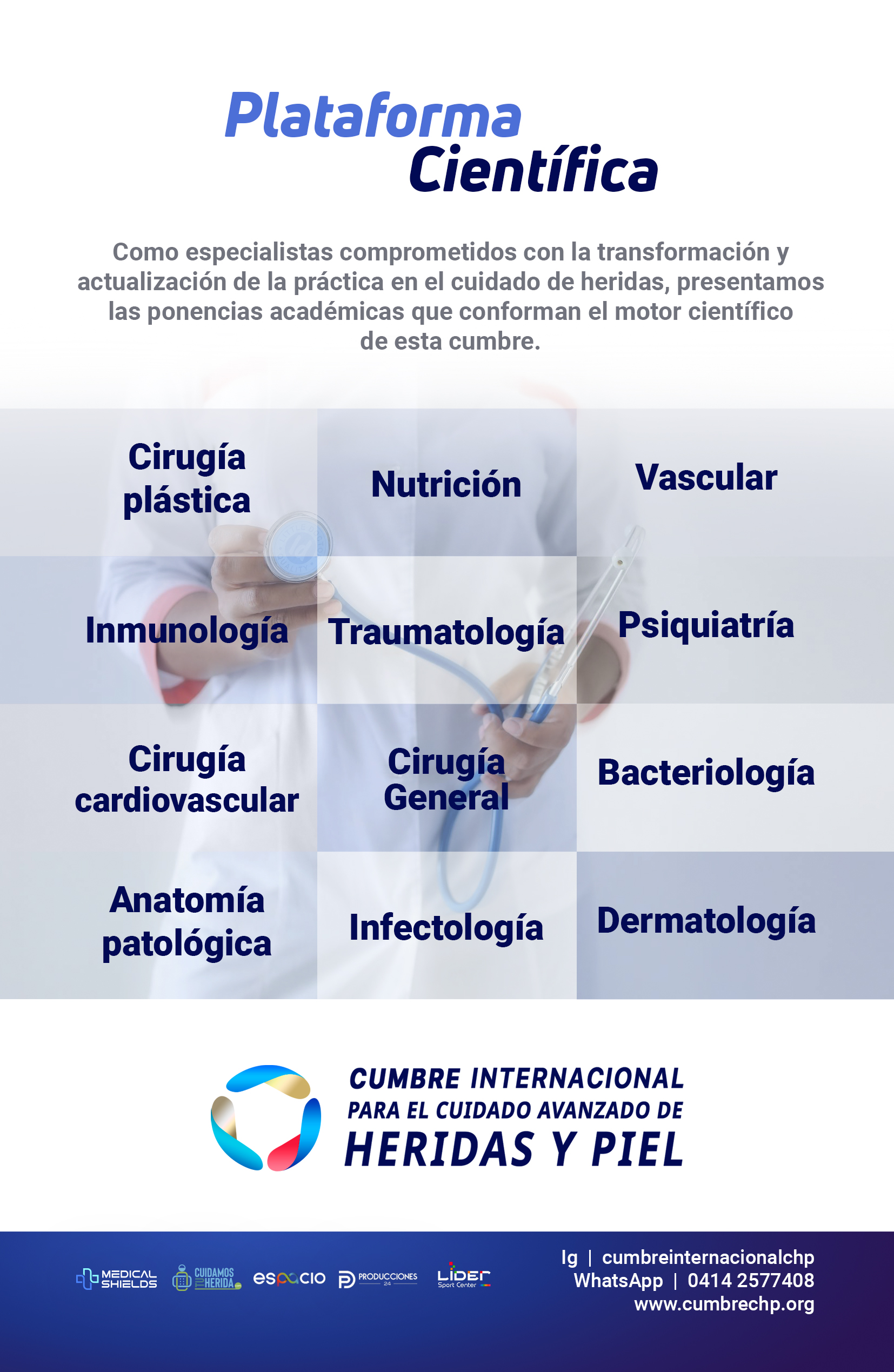 La cumbre está diseñada para profesionales que buscan la excelencia clínica, abarcando siete ramas críticas de la salud, desde Cirugía y Dermatología hasta Medicina Interna y Enfermería Especializada. A diferencia de otros encuentros académicos, la organización ha logrado que la participación de los especialistas sea totalmente subsidiada por el sector privado. Este esfuerzo conjunto garantiza que el factor económico no sea una barrera para la actualización científica de los talentos locales.