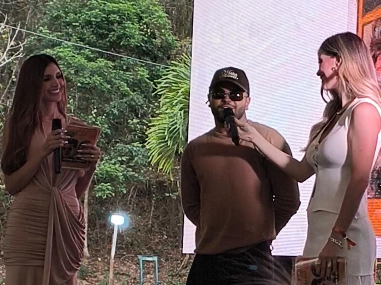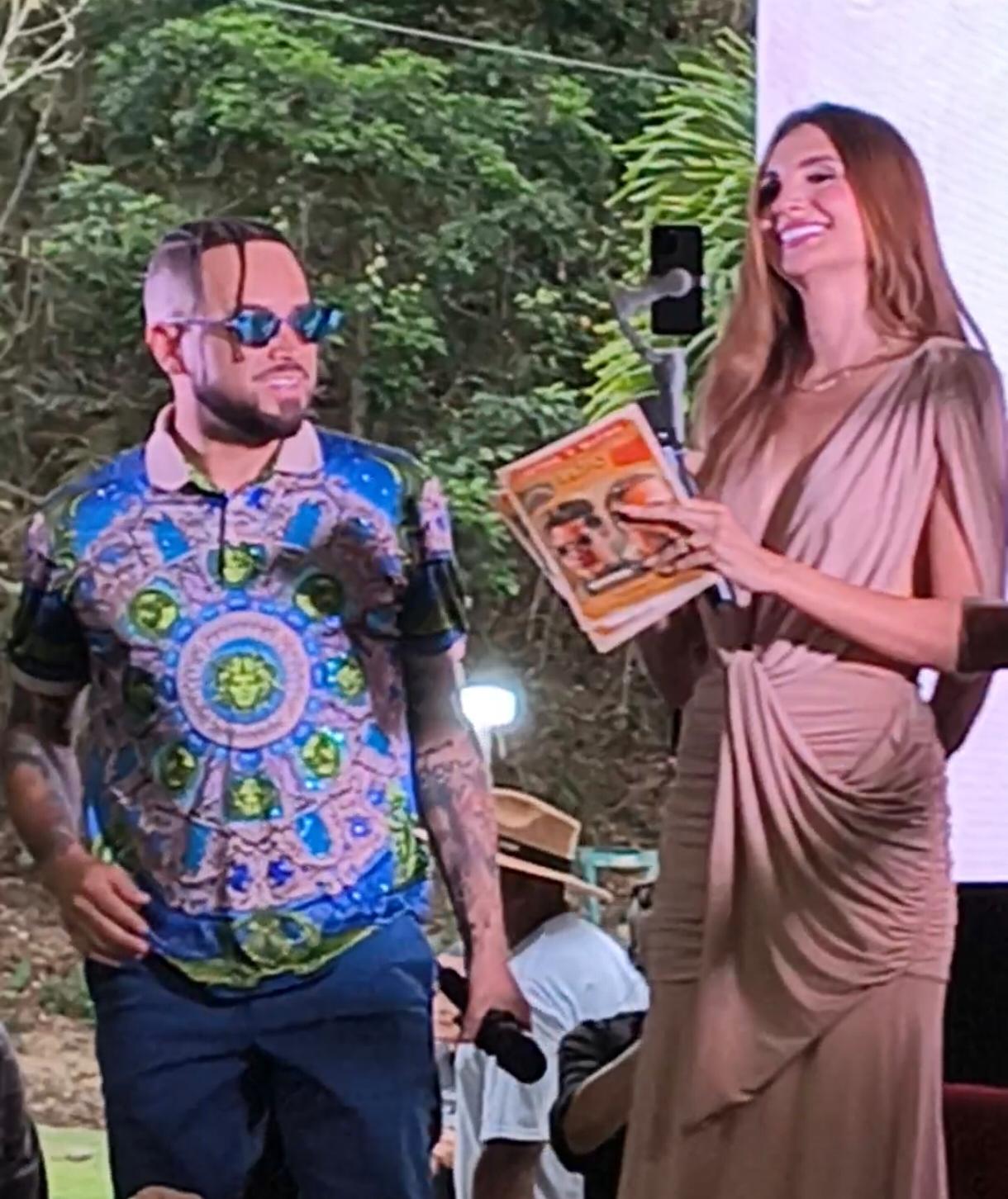 Esposa de Nacho Melany Mille, lo recibió en tarima.